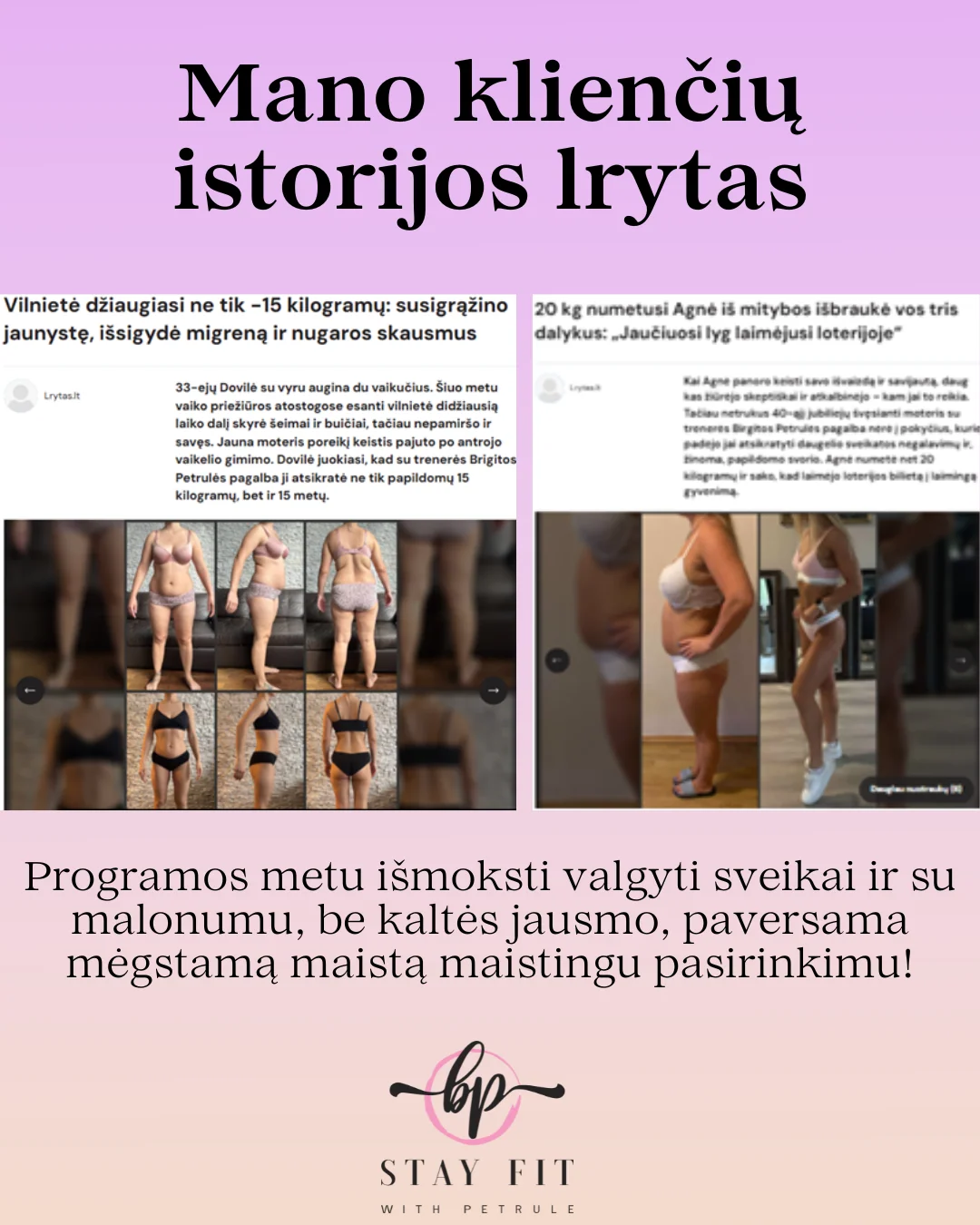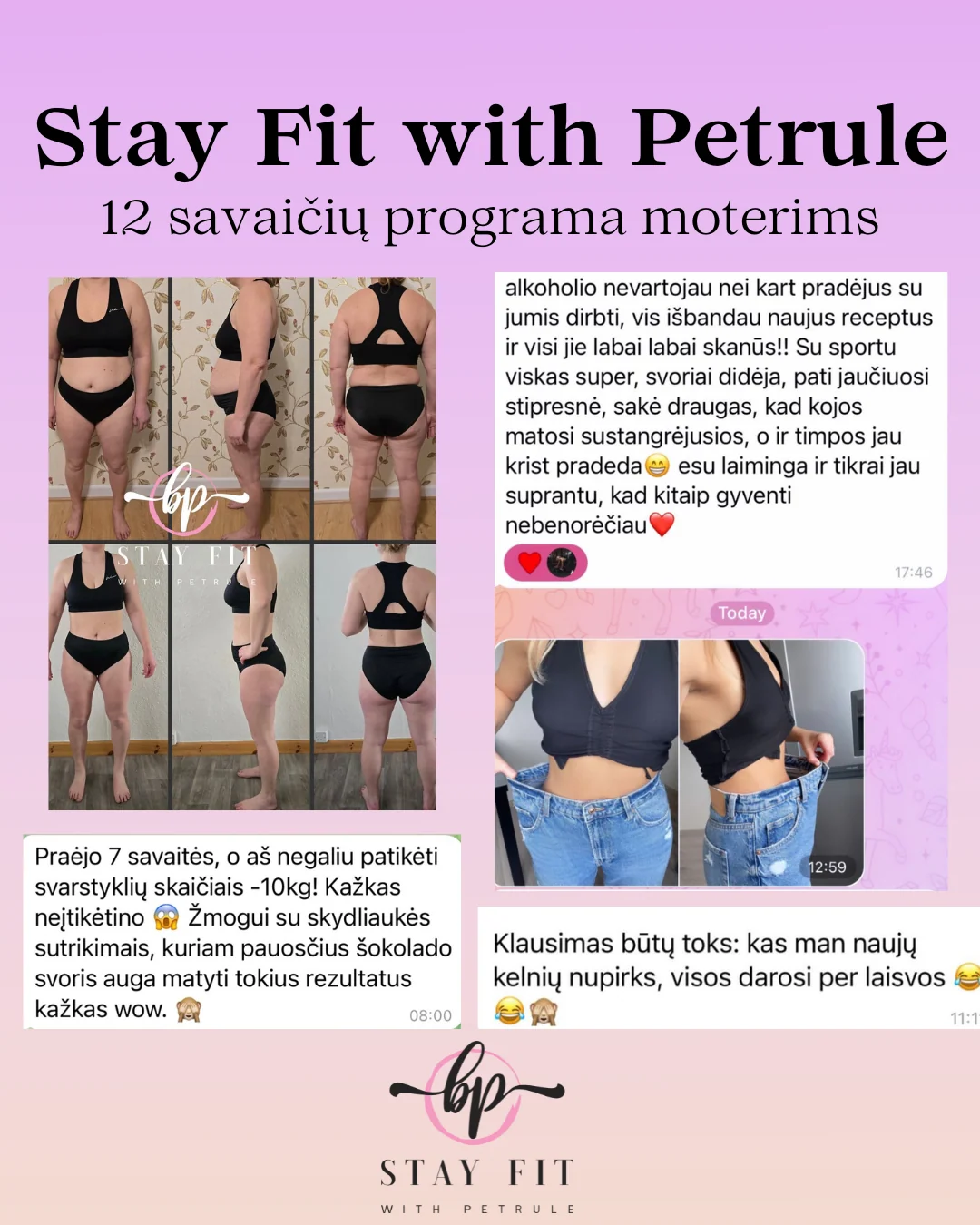 Programa „Stay Fit With Petrule“ – tai ne dar viena laikina dieta ar trumpalaikis iššūkis. Tai kompleksinis sprendimas, padedantis iš esmės pakeisti Tavo santykį su maistu, kūnu ir savimi.