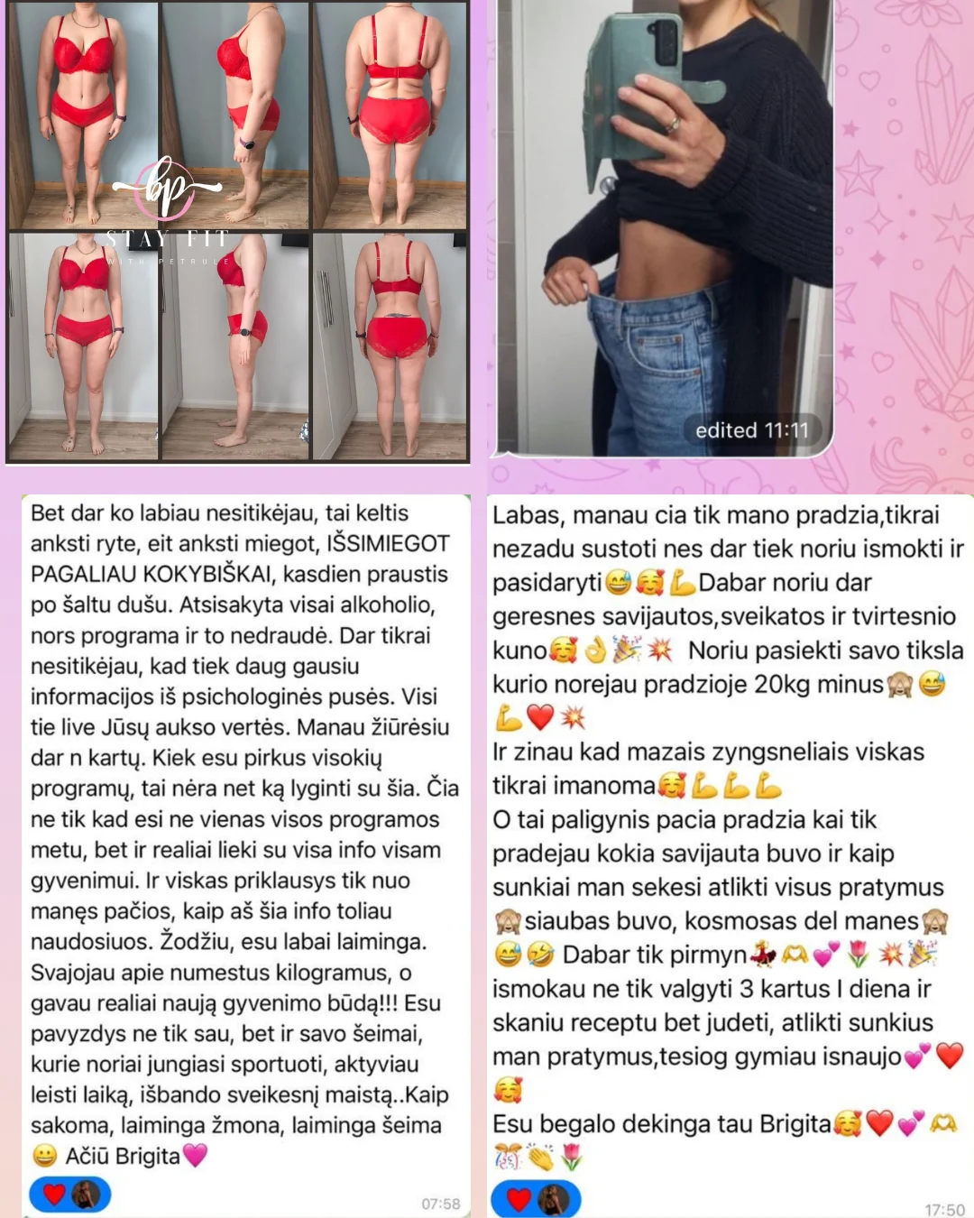 💬 Nuolatinis palaikymas ir mentorystė– bendravimas su trenere be ribų (teksto ir balso žinutėmis), atsakymai į visus klausimus, mentorystė ir motyvacija. Suteikiu individualią įpročių analizę, nuoseklų progreso sekimą. Suformuojami įgūdžiai, gaunamos žinios duoda realius rezultatus ir išlieka. Taip savarankiškai sėkmingai tęsi viską ir po programos.